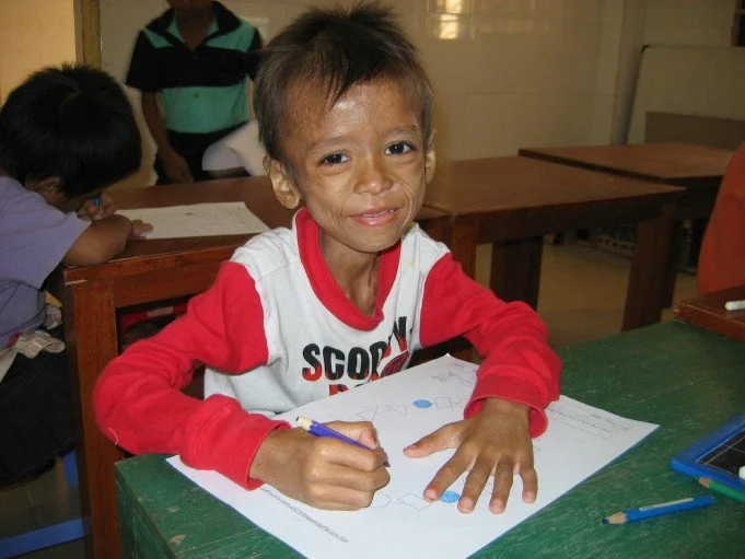 When Ye How was age 6 in 2006 his mother died of AIDS and he was hospitalized in poor condition with advanced AIDS and tuberculosis weighing 25 lbs (TB) (left panel). When the MCCC team met him in the hospital, he kept saying that he wanted to be with his mother in heaven. His TB was treated and he began his AIDS drugs at the MCCC and was feeling much better 6 months later (middle panel). The right panel shows Ye How one year later, in his first grade math class at the Maddox. Ye How continued to attend the MCCC to complement primary school and his schooling as a teenager in a vocational high school. Now, age 25, Ye How continues his HIV treatment and feels very well working in a manufacturing job in Phnom Penh. Story and pictures are shared with permission as are all photos on this website.